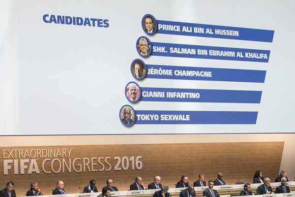 O novej hlave svetového futbalu sa rozhodlo v 2. kole. V tom prvom ani jeden z kandidátov nezískal potrebný dvojtretinový počet hlasov (138) a v 2. kole rozhodla nadpolovičná väčšina hlasov. Generálny sekretár UEFA Infantino dostal podporu od 115 asociácií. Uspel v konkurencii bývalého zastupujúceho generálneho sekretára FIFA Jeromea Champagneho, jordánskeho princa Aliho Bin Al Husseina a bahrajnského šejka Salmana bin Ebrahima Al Khalifu, súčasného prezidenta Ázijskej futbalovej konfederácie (AFC). Tesne pred voľbami sa vzdal kandidatúry juhoafrický obchodník Tokyo Sexwale bez toho, že vyjadril osobnú podporu niektorému zo zostávajúcich volebných rivalov.